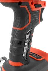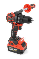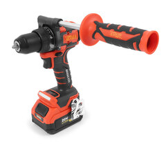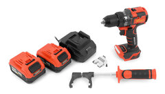 Бесщеточный двигатель обеспечивает длительную эксплуатацию, мощный 20-ти вольтовый аккумулятор с емкостью 4 Ah, крутящий момент в 100 Нм с 18-ти ступенчатой регулировкой, 2-х скоростной редуктор с блокировкой шпинделя – все это позволяет сверлить отверстия в металле, дереве, пластике и других материалах, а также работать с шурупами и саморезами разных длин и диаметров.
