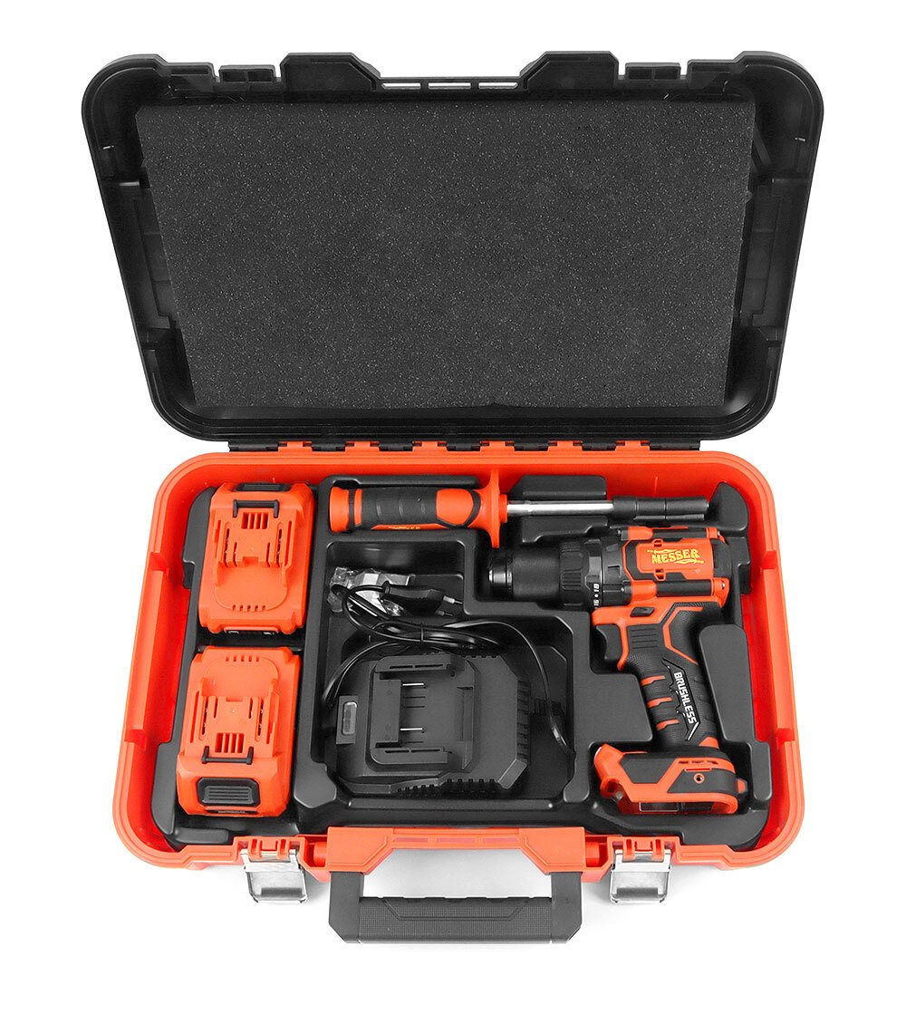Дрель-шуруповерт MESSER MD 160 поставляется с 2-я Li-ion аккумуляторами и быстрозарядным устройством в удобном для хранения и транспортировки пластиковом кейсе М-BOX.