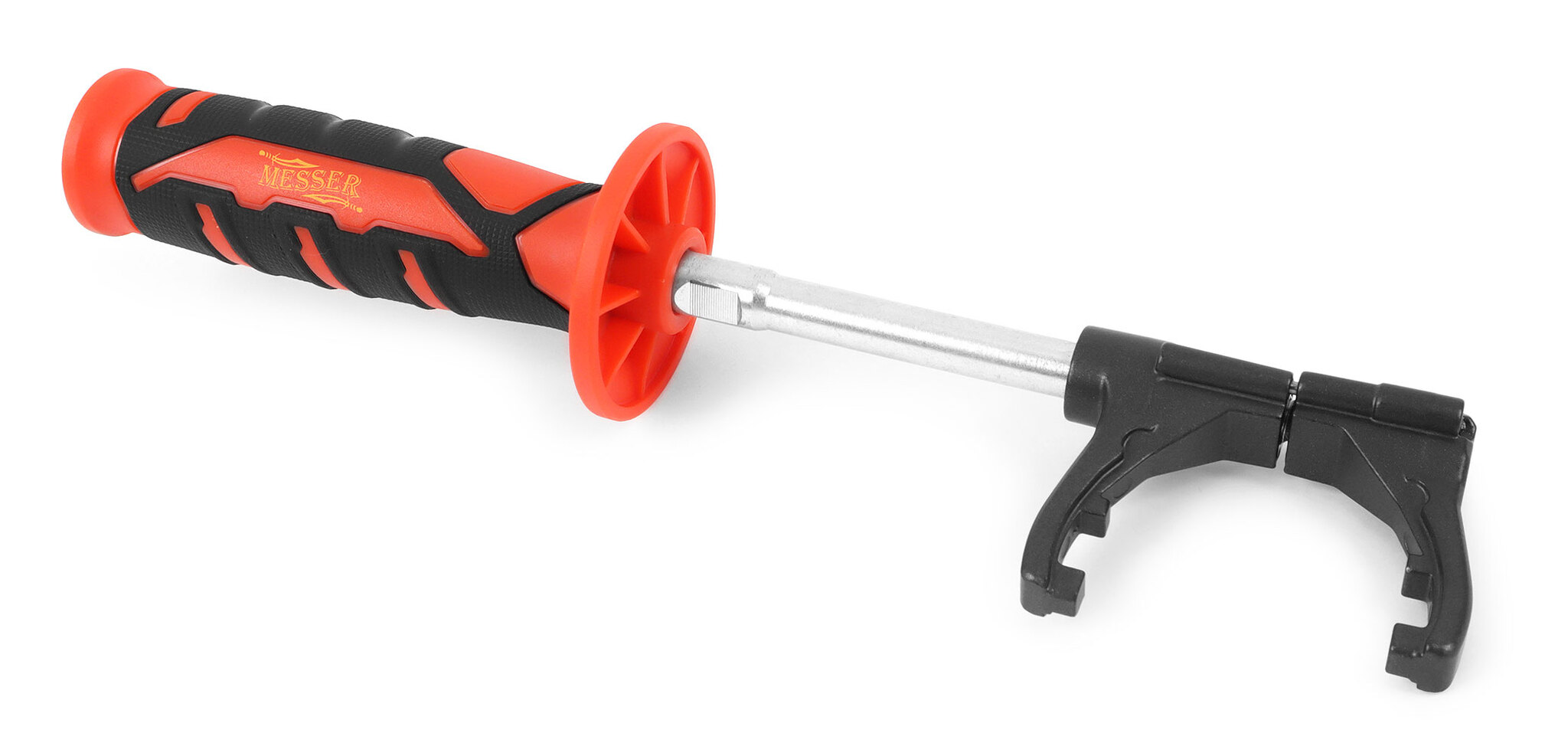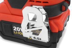 Скоба позволяет закреплять инструмент на поясе оператора, а возможность крепления темляка актуальна при работах на высоте.