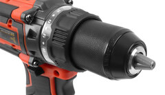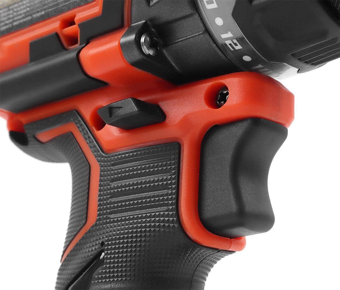 Дрель-шуруповерт имеет удобную, эргономичную сбалансированную форму и великолепно «лежит» в руке оператора. Антискользящее покрытие на основной рукояти обеспечивают надежный хват инструмента, а удлиненная дополнительная рукоять, входящая в комплект поставки, обеспечивает надежное удержание дрели-шуруповерта при работе на максимальном крутящем моменте. Встроенная защита от обратного крутящего момента обеспечивает безопасность оператора и сохранность инструмента при заклинивании сверла в материале.