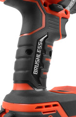 Бесщеточный двигатель обеспечивает длительную эксплуатацию, мощный 20-ти вольтовый аккумулятор с емкостью 4 Ah, крутящий момент в 160 Нм с 18-ти ступенчатой регулировкой, 2-х скоростной редуктор с блокировкой шпинделя – все это позволяет сверлить отверстия в металле, дереве, пластике и других материалах, а также работать с шурупами и саморезами разных длин и диаметров.